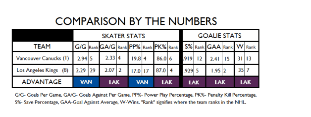 Vancouver Canucks (1) vs. Los Angeles Kings (8)